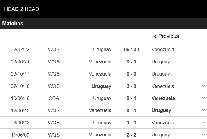 Thống kê đối đầu Uruguay vs Venezuela
