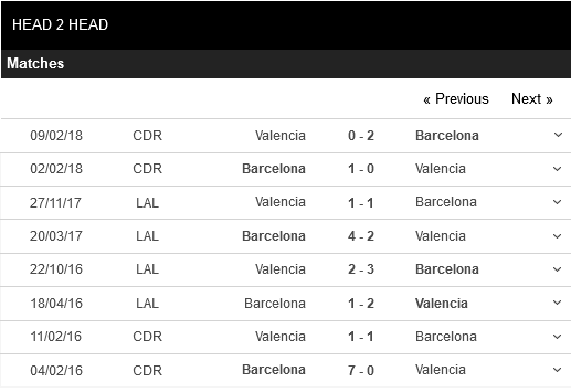 Valencia đã ghi dưới 2 bàn ở 7/8 trận gặp Barca trên sân nhà Mestalla. Trái lại, Barca ghi ít nhất 2 bàn trong 8/9 chuyến làm khách gần nhất tại La Liga. Do vậy, có thể tin vào một chiến thắng cho Barca ở trận đấu tới.