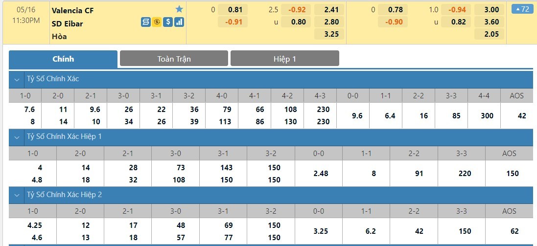 Tỷ lệ kèo cá cược bóng đá trận Valencia vs Eibar