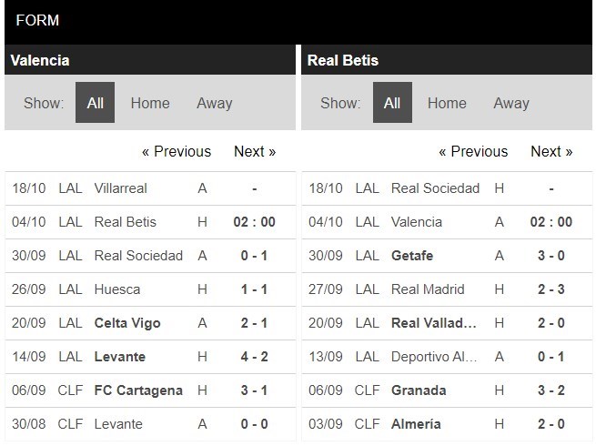 Đánh giá một cách khách quan thì Valencia và Real Betis vẫn là một cặp đấu cân sức. Nhất là khi nhìn vào phong độ thì dù cho Real Betis có để thua 2 vòng đấu liên tiếp gần đây nhưng Valencia cũng chỉ thắng 1 trận trong 3 vòng đấu gần nhất. Sự thận trọng nhiều khả năng vẫn là cách tiếp cận trận đấu mà hai đội lựa chọn. Lần gần nhất so tài giữa hai đội chứng kiến hiệp 1 khép lại mà không có bàn thắng xuất hiện.