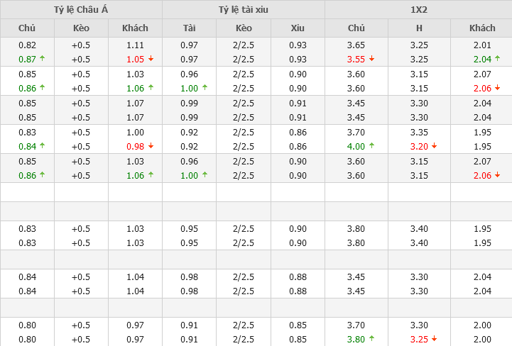 Chu kỳ lên xuống tỉ lệ kèo Venezuela vs Uruguay