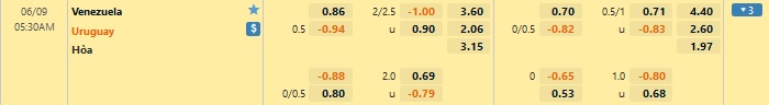 Xem tỉ lệ kèo cá cược bóng đá trực tuyến Venezuela vs Uruguay