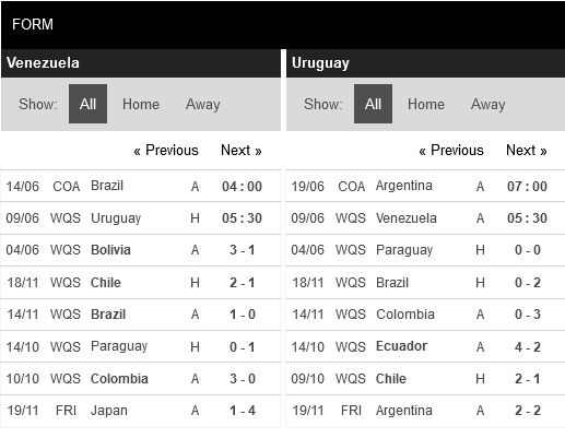 Phong độ sân khách của Venezuela thực sự ngán ngẩm nhưng họ lại chơi tương đối tốt trên sân nhà. Đội tuyển xứ hoa hậu đã thắng 3/4 trận gần nhất trên sân nhà. Với sự tự tin có được, Venezuela hoàn toàn có thể hướng tới một kết quả khả quan trước Uruguay.