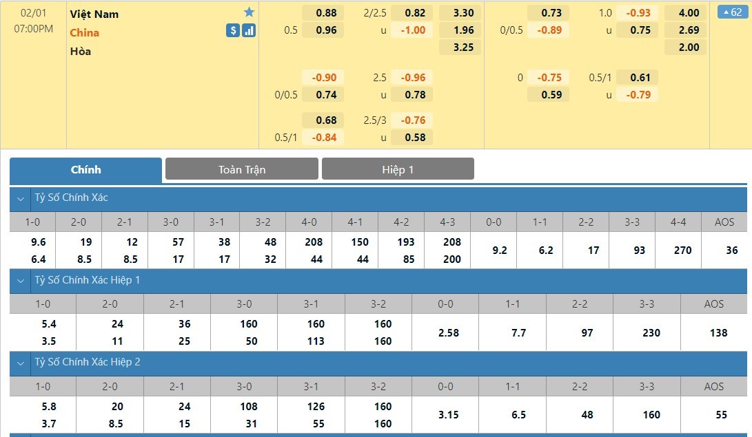 Tỷ lệ kèo cá cược bóng đá trực tuyến trận Việt Nam vs Trung Quốc