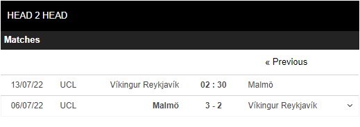 Thống kê đối đầu Vikingur Reykjavik vs Malmo FF