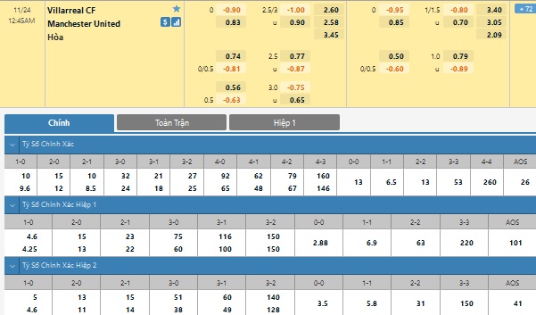Tuy vậy, Villarreal là đội thắng kèo nhiều hơn. Họ thắng kèo 6/13 trận đã đấu trong hiệp 1. Trong khi đó, MU rất ngại đấu trên sân khách và chỉ có 1 trận thắng kèo hiệp 1 trên sân khách từ đầu mùa. Do vậy, nhiều khả năng Villarreal sẽ có kết quả tích cực trong hiệp 1 trận đấu tới.