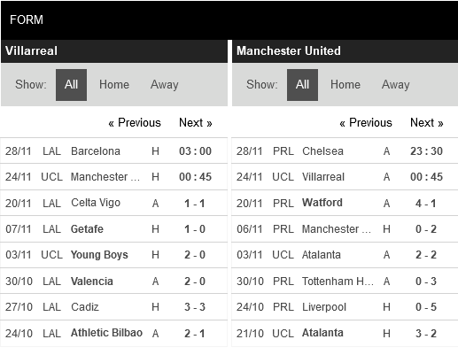 Nhận định bóng đá hàng ngày trận Villarreal vs Manchester United – 00h45 – 24/11/2021 – Champions League