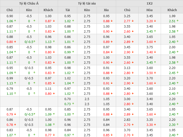 Kèo tài xỉu vẫn được giữ nguyên ở 2,75 bàn cho thấy trận đấu tới dễ có nhiều bàn thắng. 4/5 trận gần nhất của 2 đội có kèo tài xỉu này cho kết quả về tài. Do vậy, nhiều khả năng sẽ xuất hiện từ 3 bàn trở lên ở trận đấu tới.
