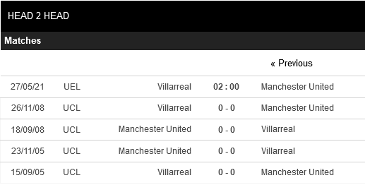 Thống kê đối đầu Villarreal vs Manchester United