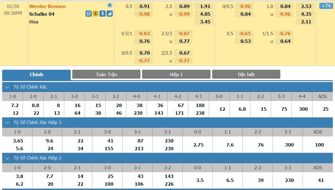 Tỷ lệ kèo cá cược bóng đá trận Werder Bremen vs Schalke