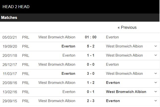 3 trong 5 cuộc chạm trán gần đây nhất diễn ra giữa 2 đội đã xuất hiện từ 3 bàn thắng trở lên. Các cuộc đấu có sự góp mặt của West Brom hoăc Everton ở mùa giải năm nay đều có trung bình 2,9 bàn. Hàng thủ của West Brom đang có thành tích tệ nhất giải với 55 bàn thua còn Everton cũng nhận tới 12 bàn thua trong 5 trận vừa qua. 90 phút tới dự kiến sẽ là 1 cơn mưa bàn thắng nữa.