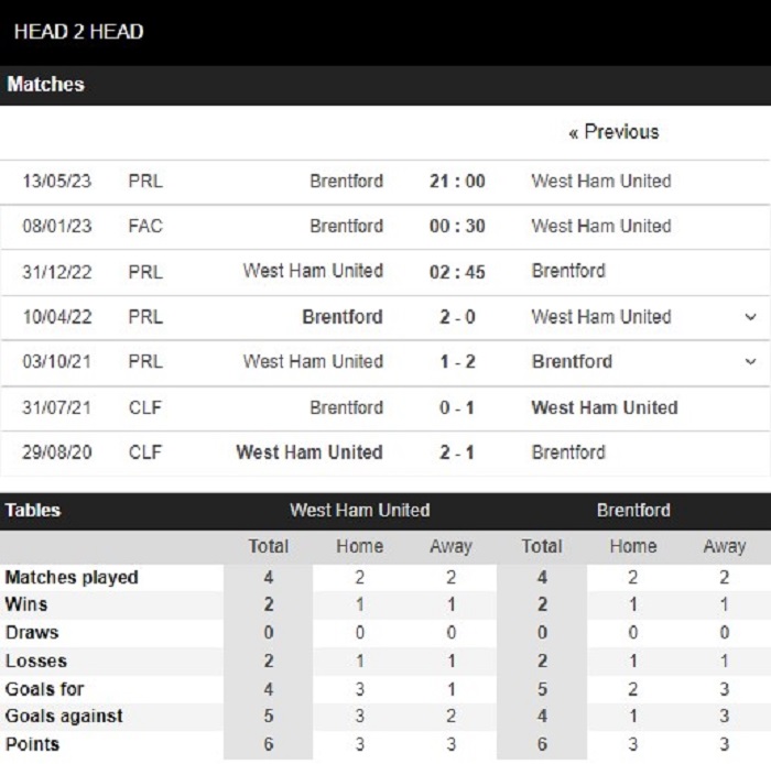 Đụng độ với West Ham ở trận đấu này, dù đối phương đang thể hiện không tốt nhưng rõ ràng là Brentford vẫn sẽ cần phải có những sự cẩn trọng nhất định bởi họ sẽ phải làm khách trận này. Dẫu vậy thì nếu thể hiện đúng với những gì đã làm ở những trận đấu vừa qua, khả năng đoàn quân của HLV Thomas Frank mang về 3 điểm trọn vẹn vẫn là khá lớn.