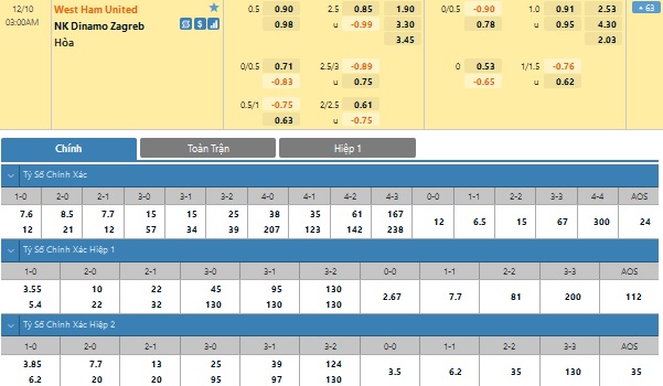 Chu kỳ lên xuống tỉ lệ kèo West Ham vs Dinamo Zagreb