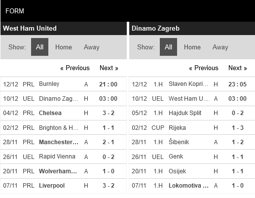 West Ham đang thi đấu cực ấn tượng trong hiệp 1 ở cúp châu Âu mùa này. Họ thắng tới 4/5 trận đã đấu tại Europa League trong hiệp đấu đầu tiên. Trong khi đó, Dinamo Zagreb chỉ thắng được 2/5 trận.