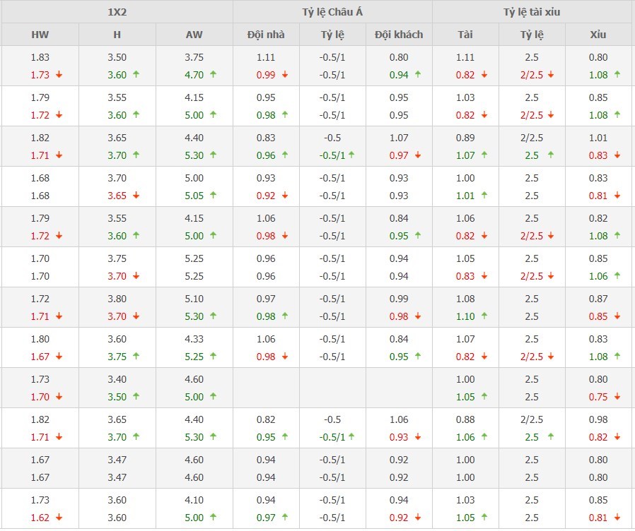 Chu kỳ lên xuống tỷ lệ kèo West Ham vs Sheffield United