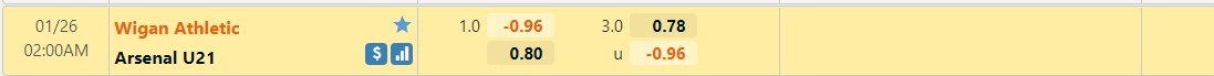 Tỷ lệ kèo cá cược bóng đá trận Wigan vs U21 Arsenal