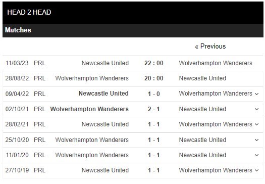 Thống kê đối đầu Wolverhampton vs Newcastle