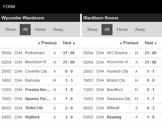 Mặc dù vậy, Blackburn vẫn là đội nhỉnh hơn hẳn so với Wycombe. Phong độ sân khách của Blackburn cũng là rất tốt. Chỉ có Norwich và Brentford là 2 đội ghi nhiều bàn trên sân khách hơn Blackburn mùa này. Chân sút số một của Blackburn là Armstrong cũng đang đạt phong độ hủy diệt với 19 bàn thắng mùa này. Nhưng không chỉ thế, Blackburn còn có những họng súng khác sẵn sàng nhả đạn như Gallagher, Brereton và Elliott.
