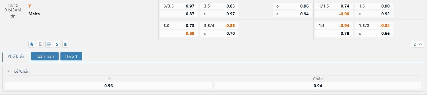 Xem tỷ lệ kèo cá cược bóng đá trực tuyến Ý vs Malta