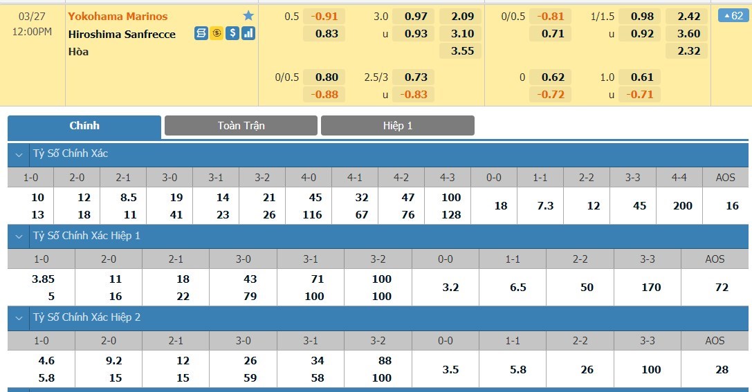 Tỷ lệ kèo cá cược bóng đá trận Yokohama F.Marinos vs Sanfrecce Hiroshima